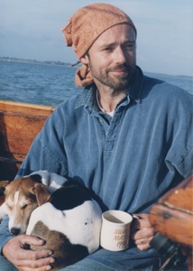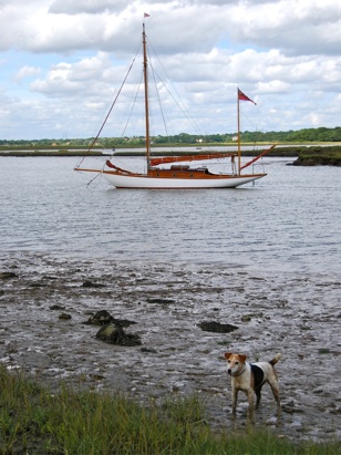 I sail this 35ft. gaff yawl, FIREFLY, with my wife and the dog Louis. When the woolly hat goes overboard...