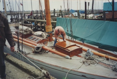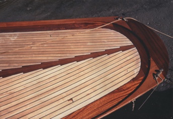 Pete Graham had already put almost a whole set of new deck beams into Hardy, as well as a new stem and a ply sub-deck when I came to the job. My first job was the laying of a teak deck, and then the rails which are 5in. deep at the stem, tapering away to nothing but the thickness of the capping at the stern.