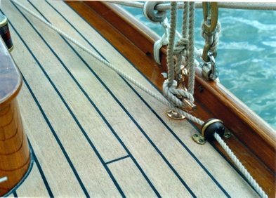 Caulked and payed. The new teak cabin coamings and coachroof transform the look of the boat. A teak log was purchased in order to obtain boards long and wide enough for the cockpit/cabin coamings.