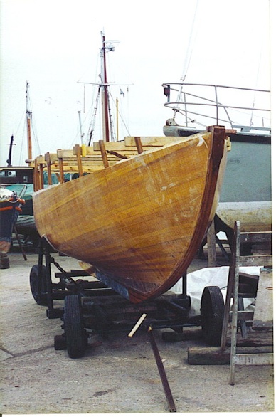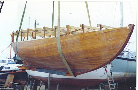Fabian Bush drew up the new boat for cold-moulded construction and produced very accurate offsets from which I built the hull. The customer planned a fixed cabin and a gaff rig.